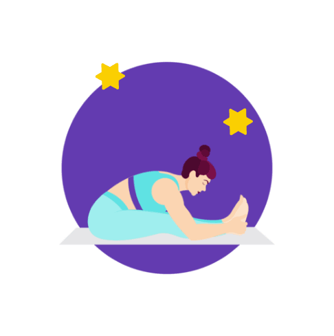 3. Schmetterling: Bringe die Arme hinter den Kopf, die Fußsohlen zusammen und lasse die Knie nach außen sinken.